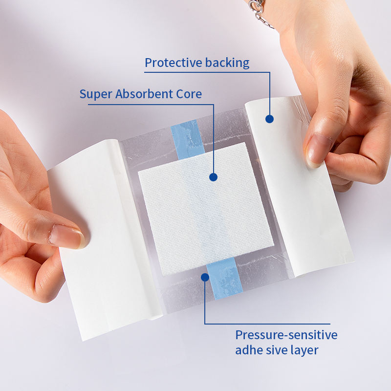 Transparent Wound Dressing is made of a non-adherent pad bonded to acrylic adhesive coated polyurethane film on the release liner with a “S” line cut. Used on low-to-moderately exudating wounds, acute wounds, etc. lt has excellent impermeability, prevents bacterial invasion and protects the wound.