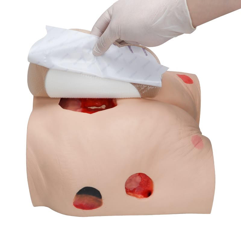 Silicone Foam Dressing Bordered Sacrum is a highly absorbent self-adherent wound dressing, consisting of a soft silicone contact layer, a flexible polyurethane foam pad, and a vapor-permeable, moisture-proof outer film. The silicone adhesive sticks to the surrounding skin but not to the wound bed, minimizing pain and the risk of damage to the wound area.